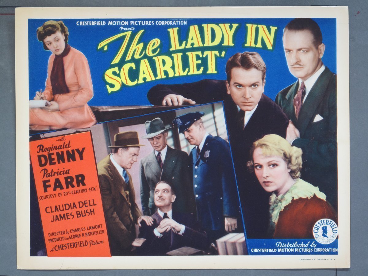 LADY IN SCARLET (Chesterfield) 1935 Title Card +(7) Lobby Cards