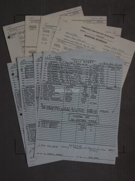 Notes: many hand corrections throughout. There are 11 wardrobing pages bound with the script for the various characters on the show with numerous hand written notes, 4 pages of call sheets and 4 pages of shooting schedules